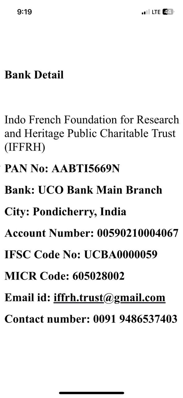 Account name: Indo French Foundation for Research and Heritage Public Charitable Trust (IFFRH)